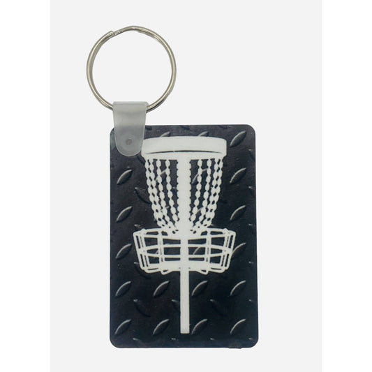 Disc Golf Keychain DISCGOLF BASKET Trucker BLACK Custom Made Key Ring Hardboard
