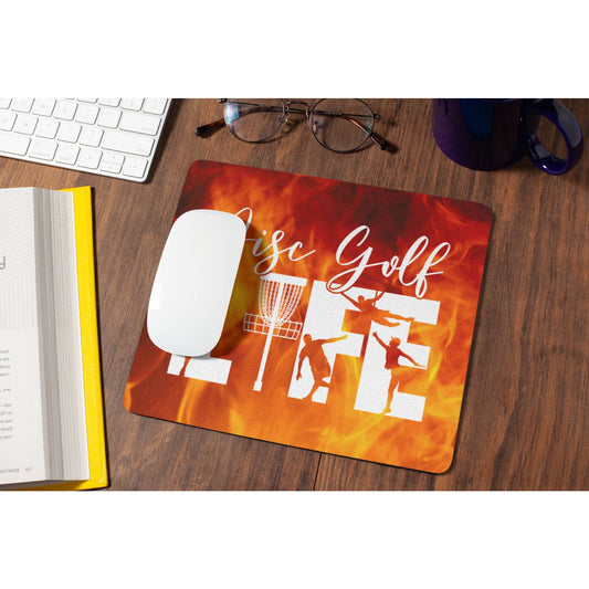 Disc Golf Life Mouse Pad Orange Flames Gaming Desk Mat Custom Gift