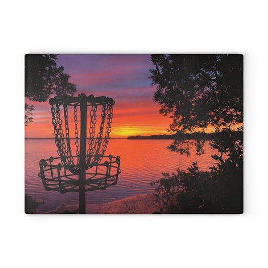 Disc Golf Lake Sunset Glass Cutting Board Discgolf Discgolfer Gift