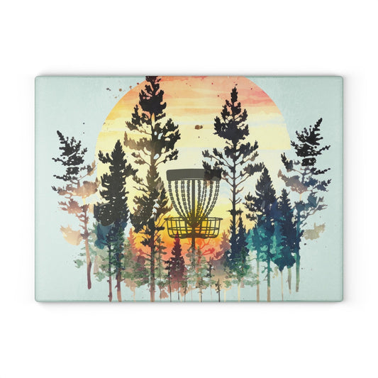 Disc Golf Forest Sunset Glass Cutting Board Discgolf Discgolfer Gift