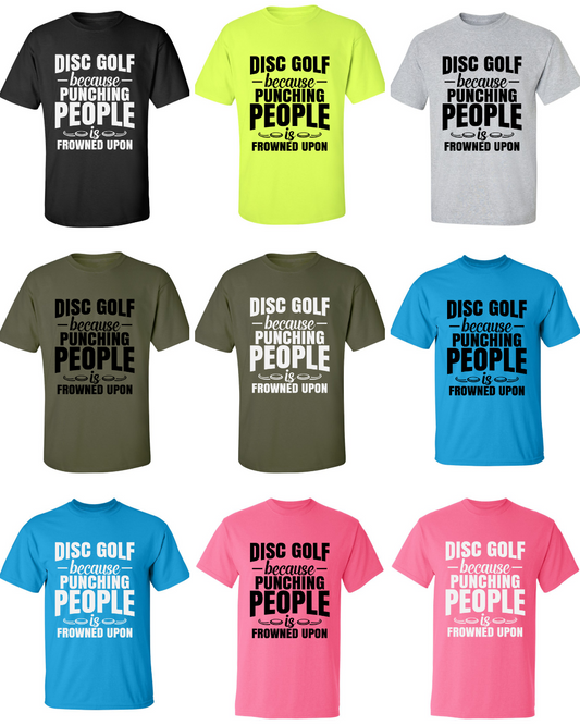 Disc Golf Shirt Punching People Frowned Upon Funny Discgolfing Graphic T Shirt