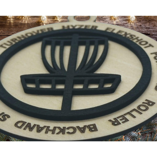 DISC GOLF Basket Hyzer Backhand Christmas 2 Layer Ornament Discgolfer Gift